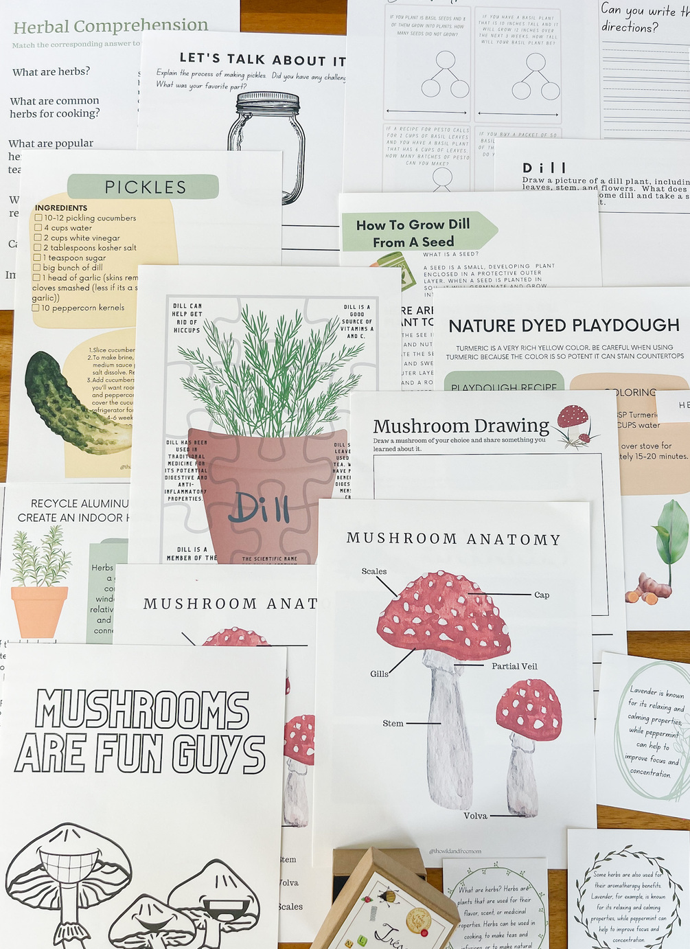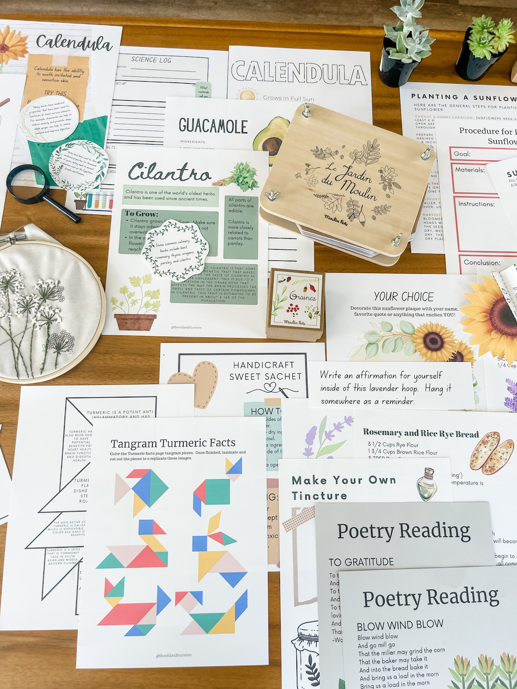 Learn about herbs, foraging and more in this 70+ page unit study. In this hands on unit you will find handicrafts, DIYs, writing prompts, STEM activities, poetry readings, reading comprehension and more!